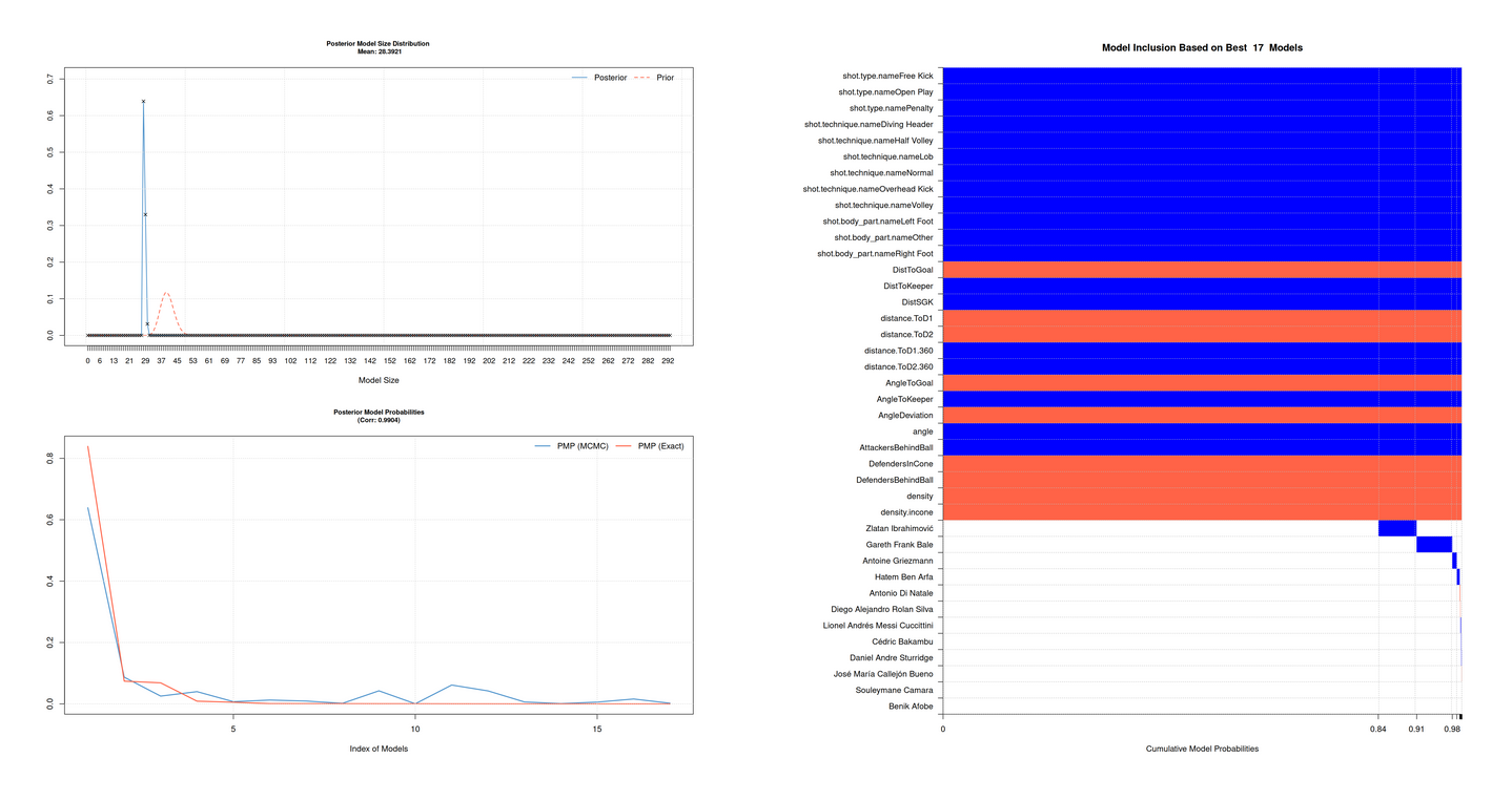 Analyzing shooting performance of soccer players via a Bayesian model averaging approach