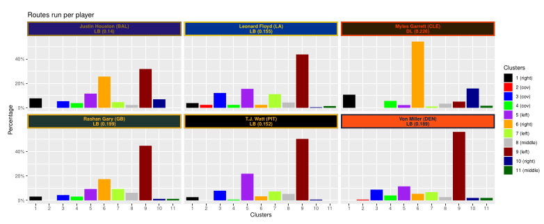 Clustering pass rush routes in the NFL